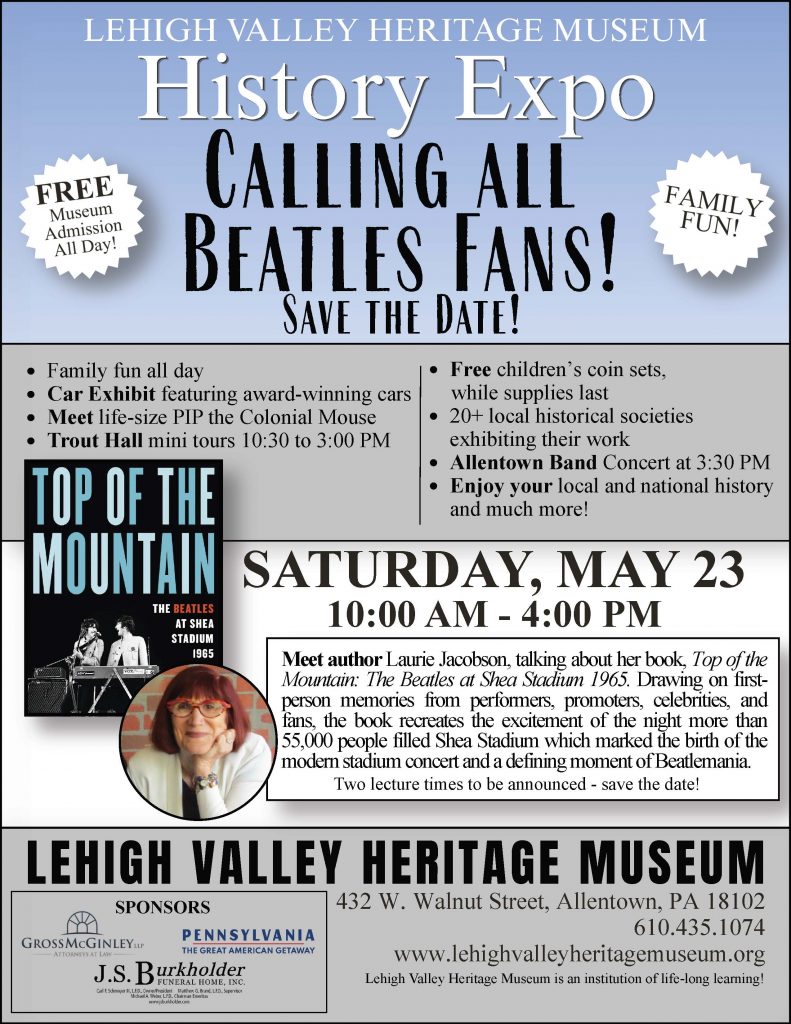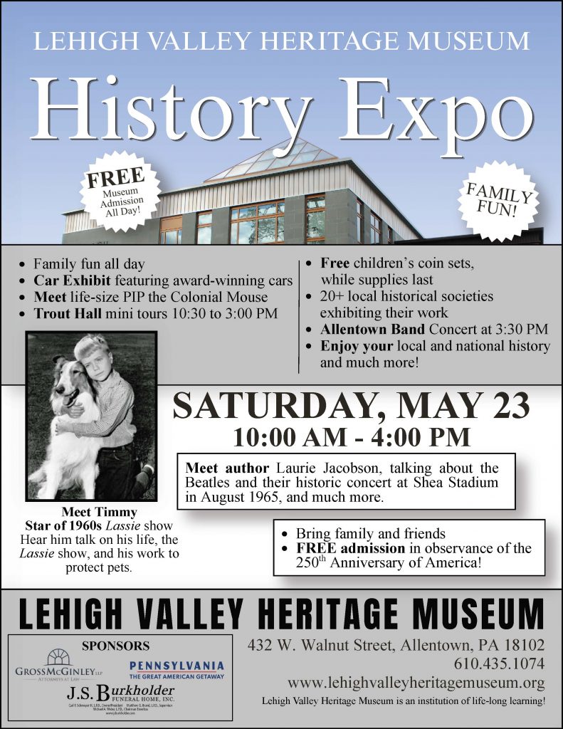 The History Expo on Saturday, May 23, from 10 am to 4 pm at the Lehigh Valley Heritage Museum is shaping up to be one of the largest and most ambitious public programs the Museum has ever hosted and we are thrilled to invite the community to be part of this special day-long celebration of history.